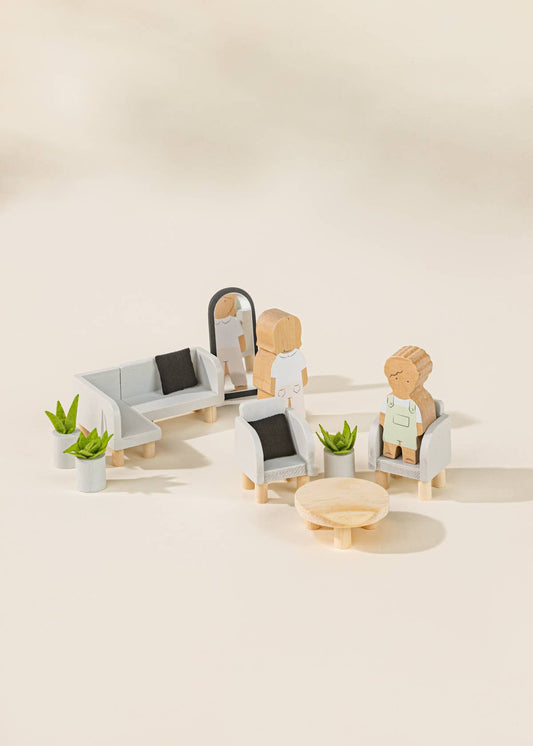 Wooden Doll House Living Room Furniture & Accessories (10 pc