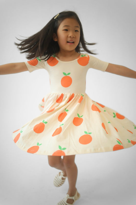 Short Sleeve Twirl Dress in Tangerines