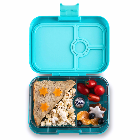 Leakproof Bento Box for Sandwiches - Yumbox Surf Blue with Shark Tray