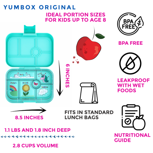 Leakproof Bento Lunch Box for Kids - Yumbox Miami Aqua (Unicorn)