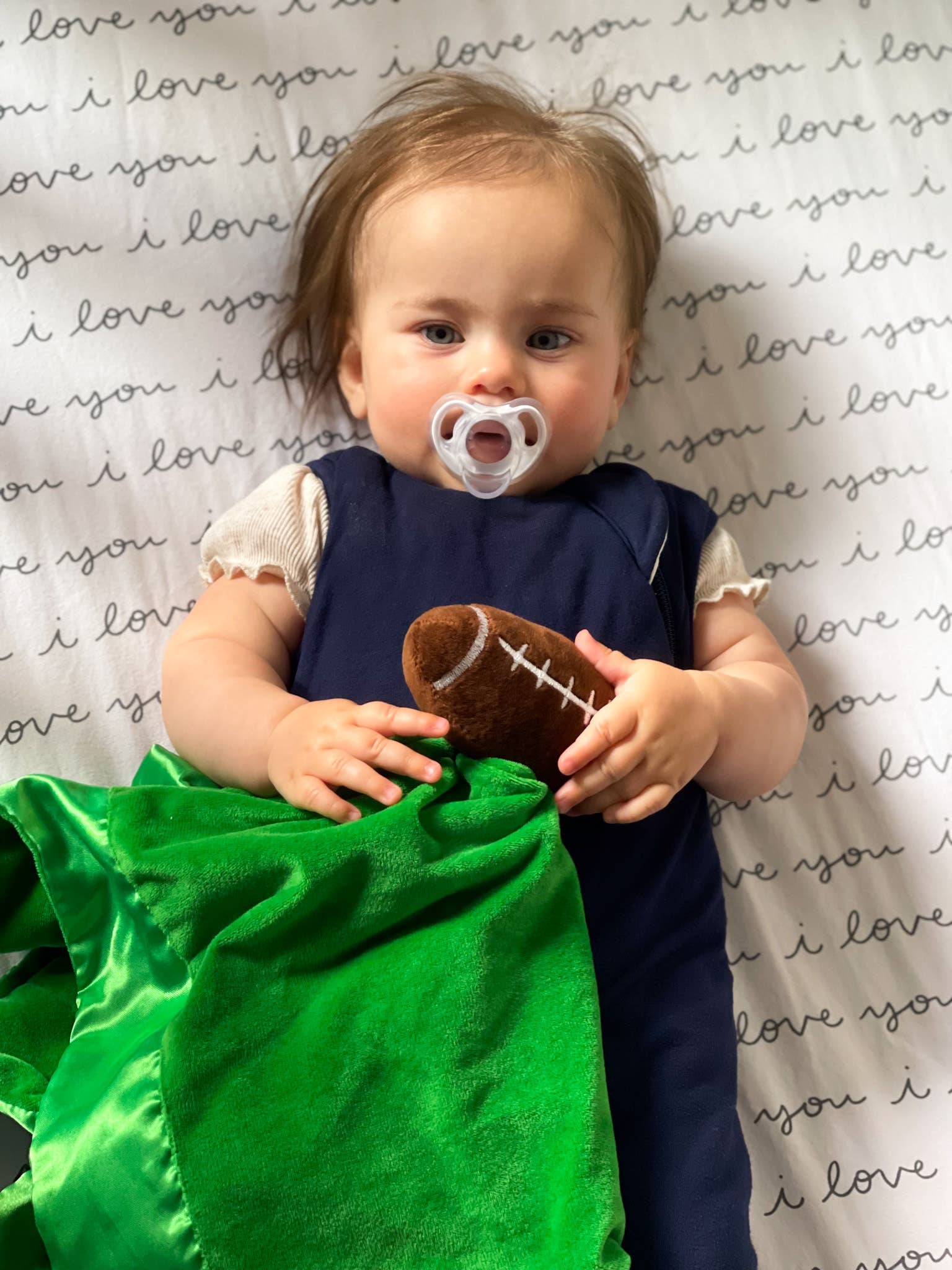 This Football lovey blanket is made of a super soft minky fabric and is a great unisex gift for any new baby or toddler. Children use these blankets for comfort and security at naptime, and they are also great to take on outings because of their compact size and the combination of a doll and a blanket together in one. Perfect for a baby shower gift for a new baby, or a birthday gift for a toddler. They're so soft and cuddly! Tell your customers to grab 2, you'll need a backup!!