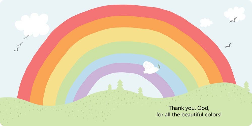 God created a world full of beautiful colors. This adorable touch-and-feel book will teach your toddler to identify color names and to praise God for His glorious creations!
