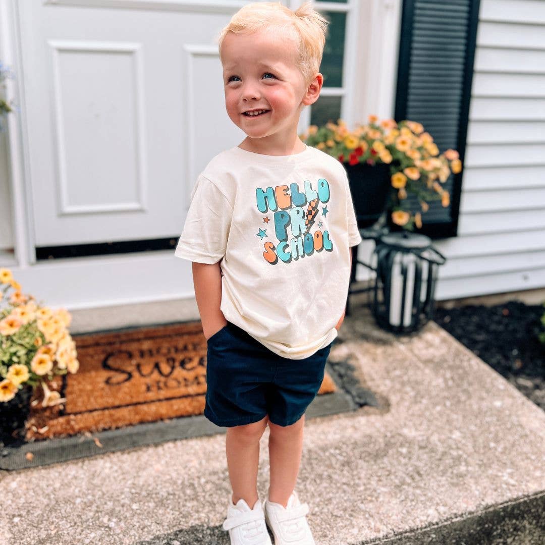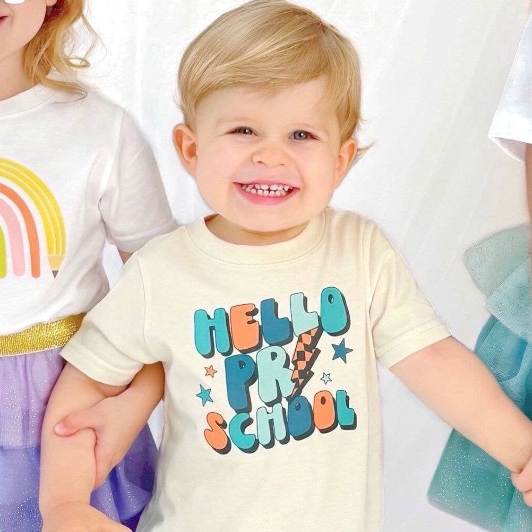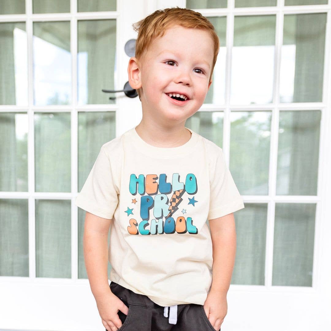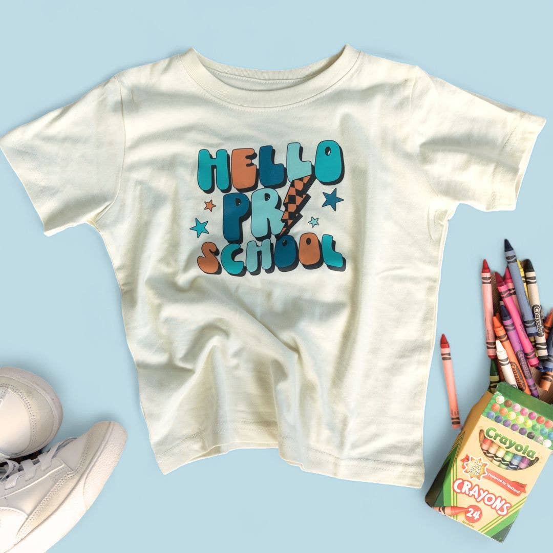The Hello Preschool Short Sleeve T-Shirt is a fun and cute t-shirt for kids celebrating back to school!