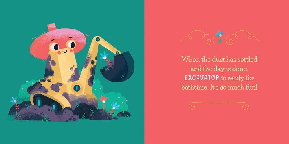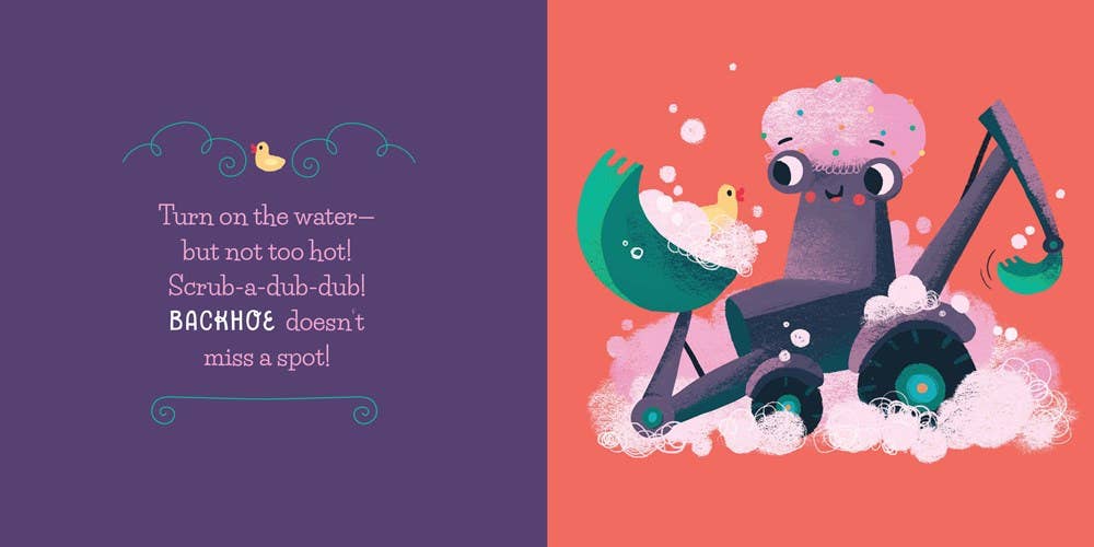 Trucks dig bathtime! Join Excavator and the other construction trucks as they scrub-a-dub-dub away the dust of the day with a well-earned bath.
