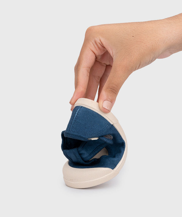 100% cotton T-Bar canvas designed in barefoot medium concept, zero drop, flexible, soft and with removable sole. The dye on our canvas is uneven due to its washed effect. Wash in cold water without the insole.