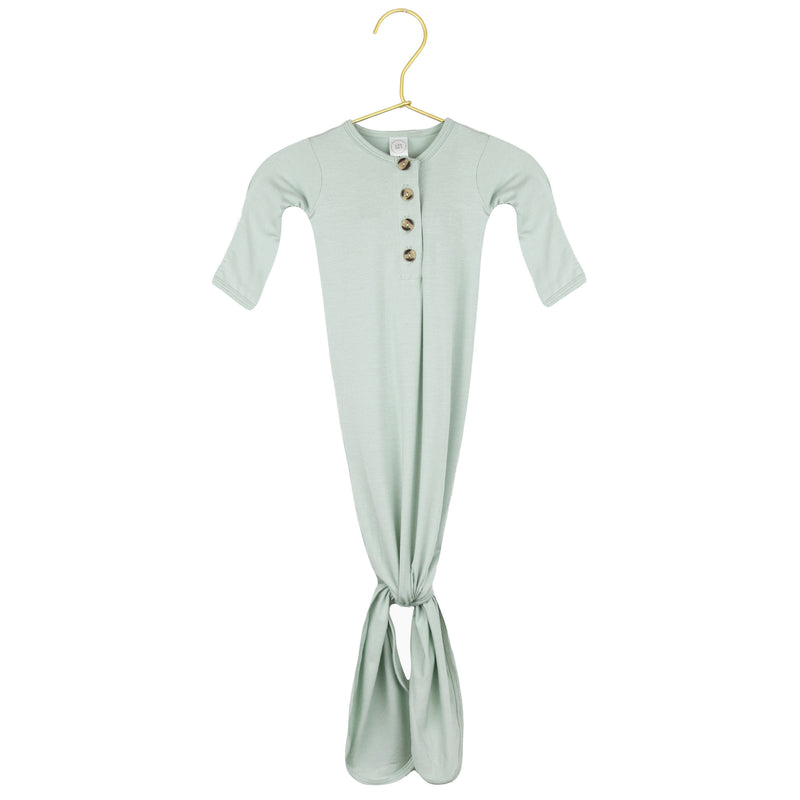 The easiest tie-bottom outfit for day or night. Made for hassle free diaper changes and gentle dressing, I designed this with a button-down front and tie bottom for simple closure (no more snaps at 2am!). Fold over wrist cuffs are the most thoughtful finishing touch.