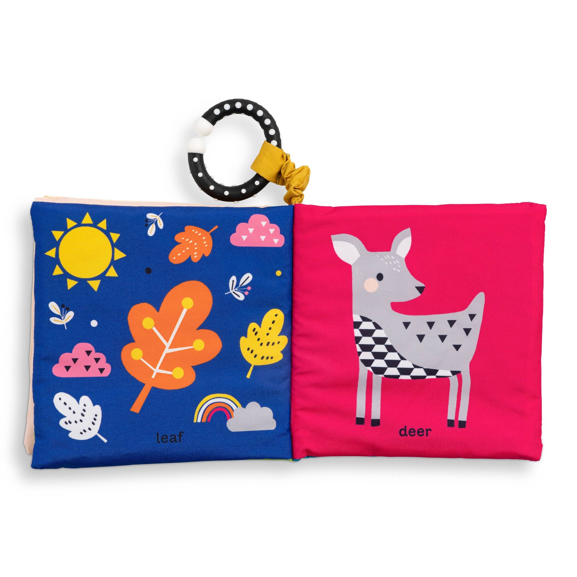 A colorful, crinkly cloth book and teether perfect for little ones! Introduce babies and toddlers to the forest in this soft book with enticing crinkly pages. Through bright, colorful illustrations, little ones will learn first words like acorn, fox, and leaf while developing their senses and fine motor skills. Perfect for repeat readings (and crinkling!), this cloth book packaged with a teether is the ideal gift for any young child and caregiver. Children's cloth book; 6 x 6 inches; 8 pages.
