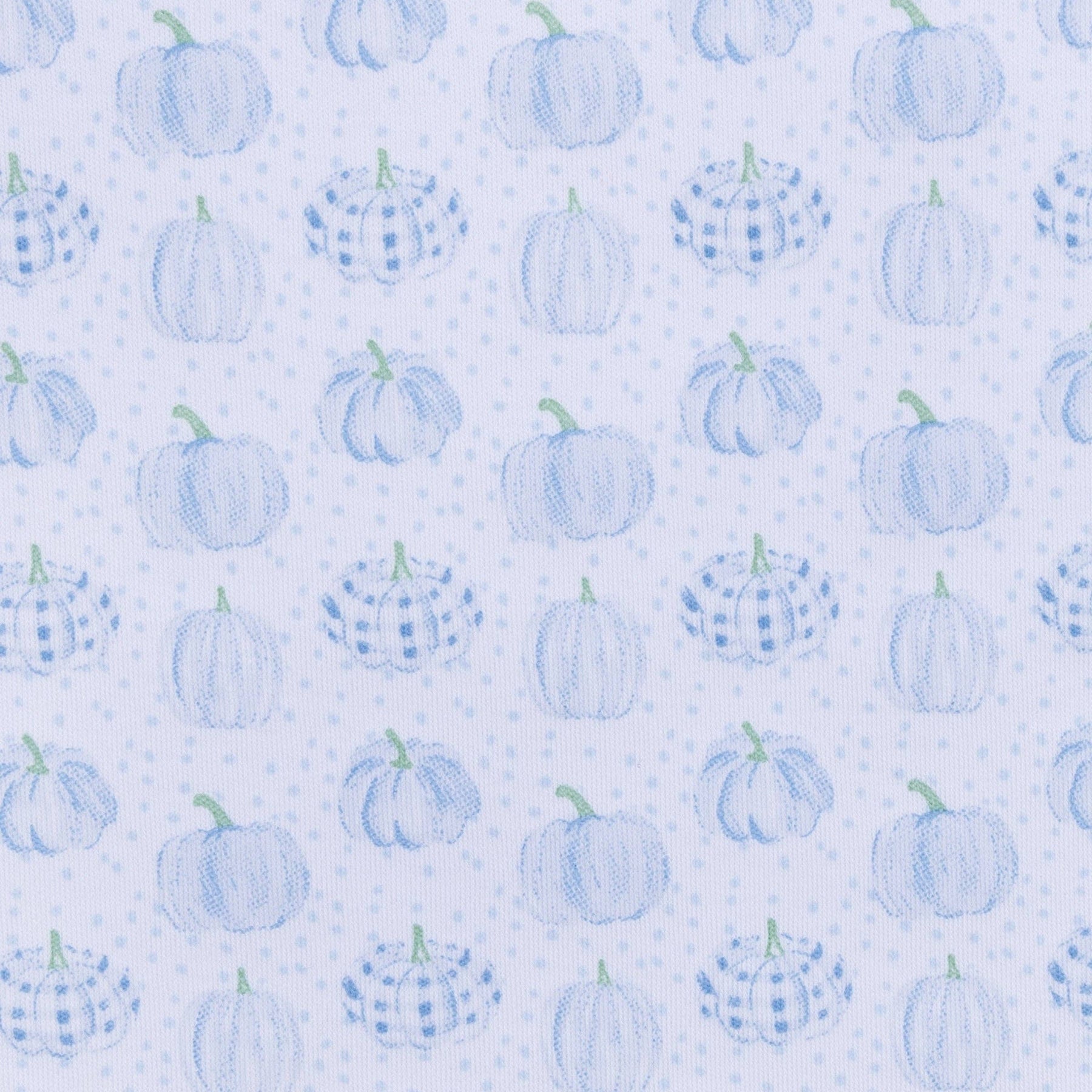 Magnolia Baby Precious Pumpkins Print Zip Footie - Light Blue Make nighttime changes a breeze with our Precious Pumpkins Print Zip Footie in Light Blue! Made from Luxurious Pima Cotton, this cozy footie features a delightful all-over pumpkin print and a convenient two-way zipper. Features: * 100% Pima Cotton: Soft, breathable comfort. * All-Over Pumpkin Print: Adorable pattern for fall fun. * Two-Way Zipper: Easy dressing and quick changes. * Footed Design: Keeps tiny toes warm and cozy. Benefits: * Machine Washable: Simple and convenient care.