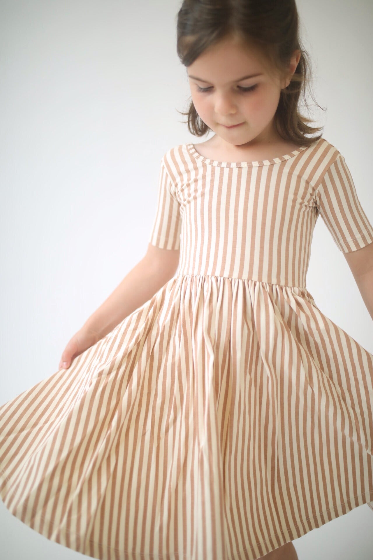 Good Apples dress is made with stretchy-soft organic cotton and features a scooped back, pockets for all their treasures, and a full circle skirt made for twirling.