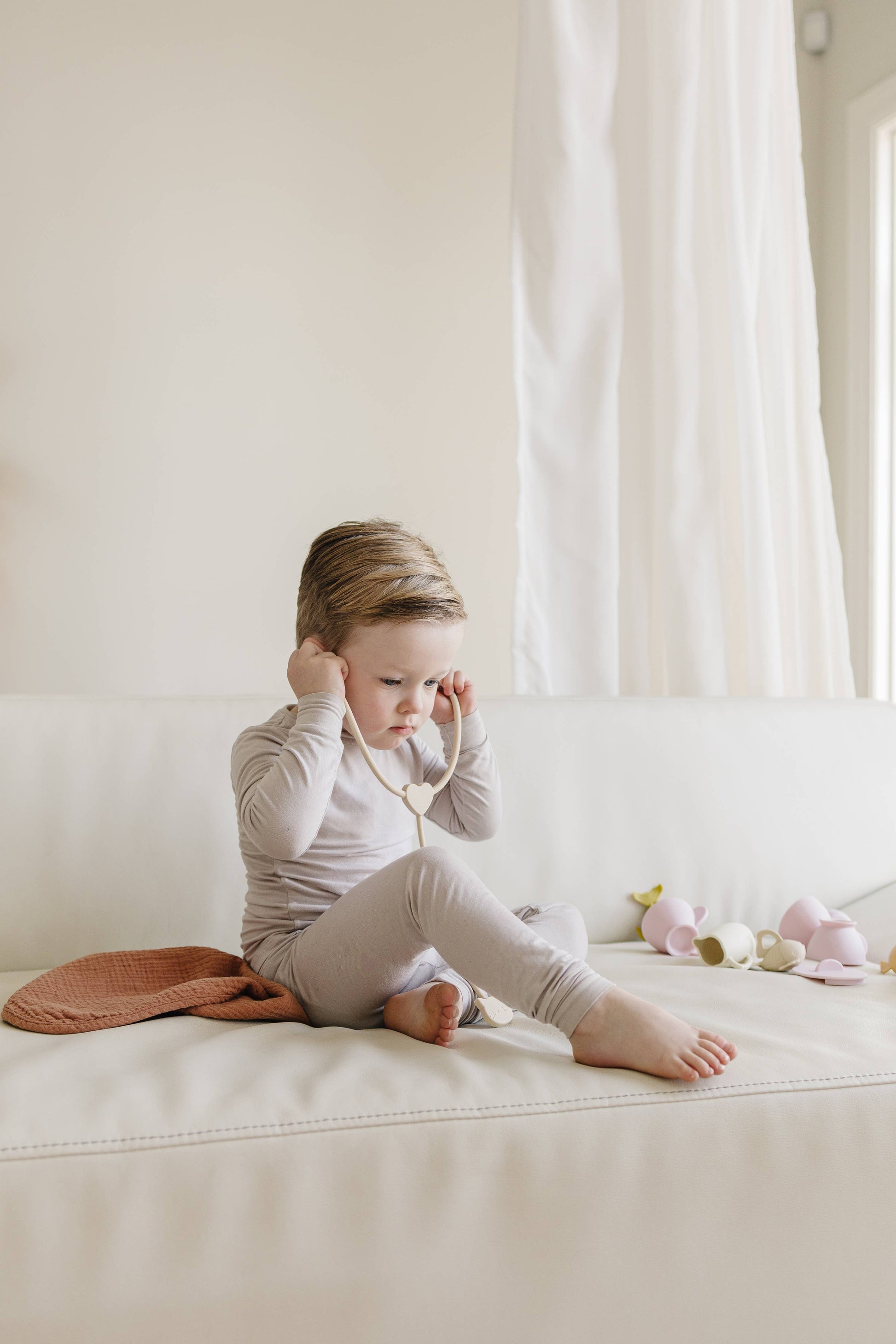 Marlowe & Co's silicone doctor kit is an open-ended toy designed to spark imaginative play and introduce your child to the world of healthcare! This set is perfect to help teach your little one about medical tools and help prepare your child for real life experiences at the doctor’s office. Everything fits nicely in an adorable cotton tote for convenience and storage and is packaged in a gift-able box.
