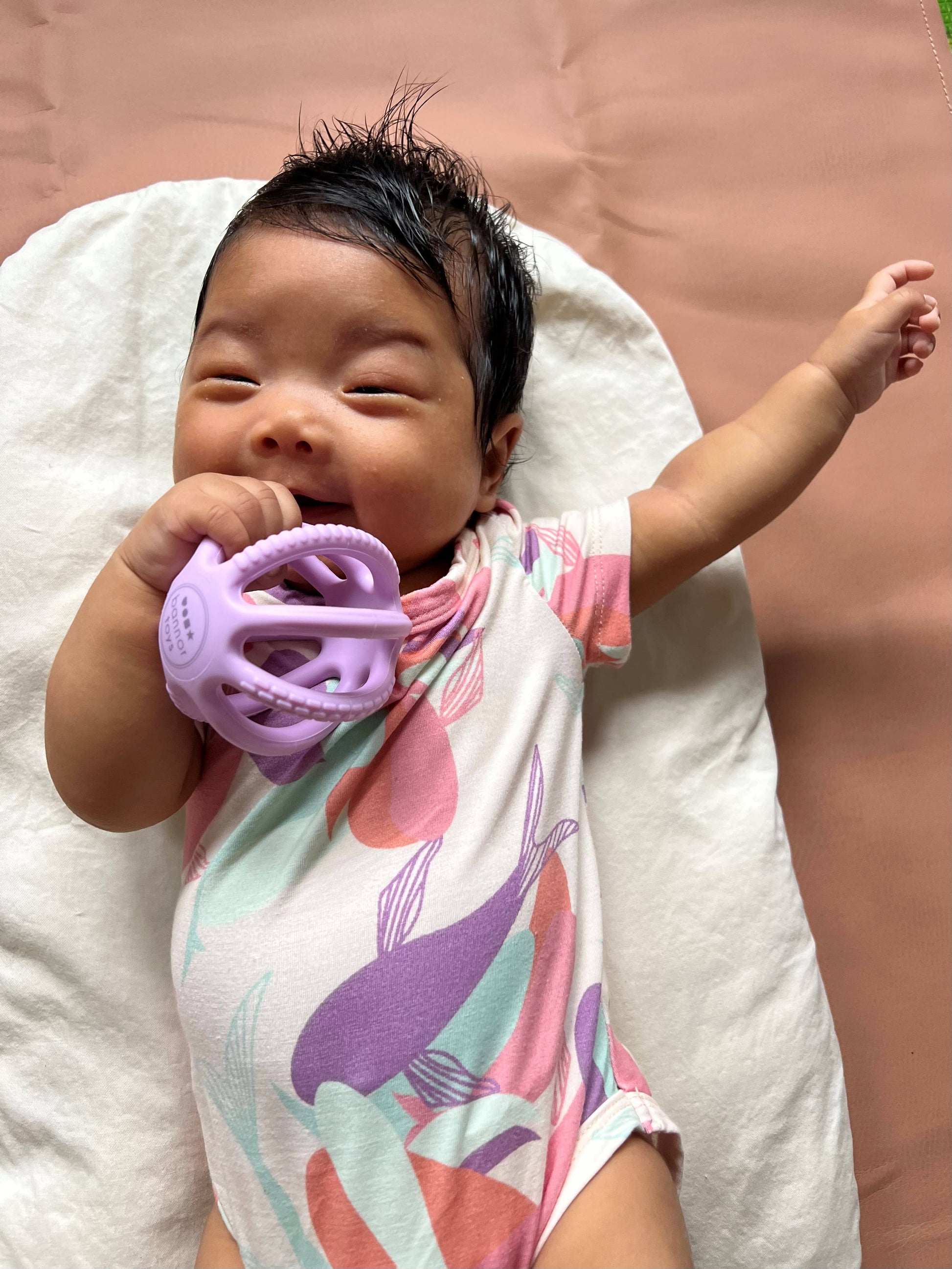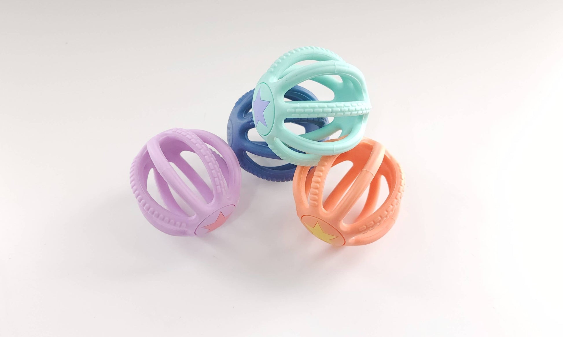 Made from 100% food-grade, non-toxic silicone that is BPA and phthalate free. Designed for easy grasping with little fingers and super squishy for fun playing! Our teething ball also has textures on the sides to give baby something to gum at and make it easy for them to use. Available in 4 beautiful colors!