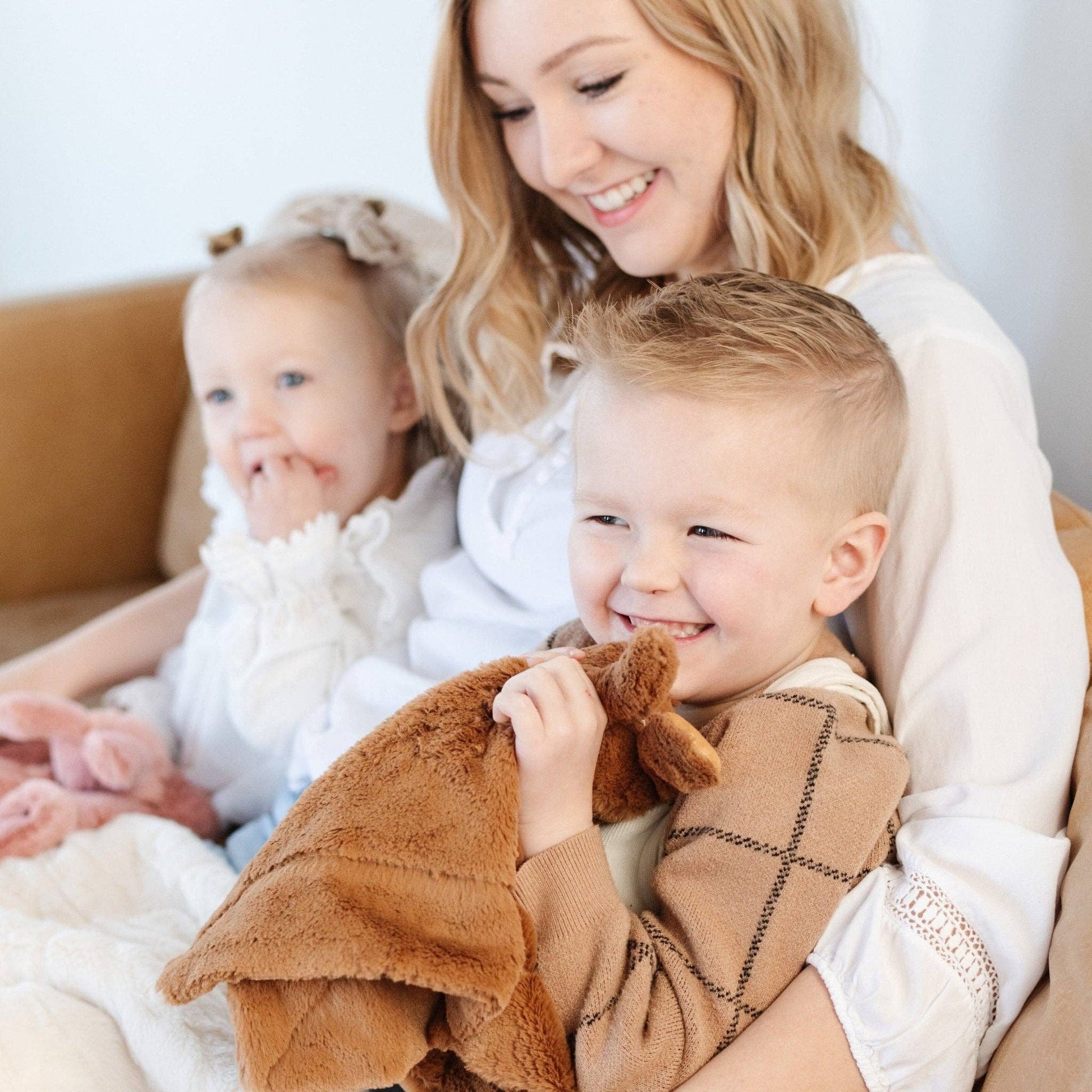 Comfort meets convenience with Saranoni’s newest blanket-meets-stuffed-animal-creation: Loveys! Created with our fan-favorite faux fur fabric, these buttery-soft buddies are created with little hands (and big imaginations) in mind! Bring comfort along for the ride–choose a Saranoni Lovey little today!