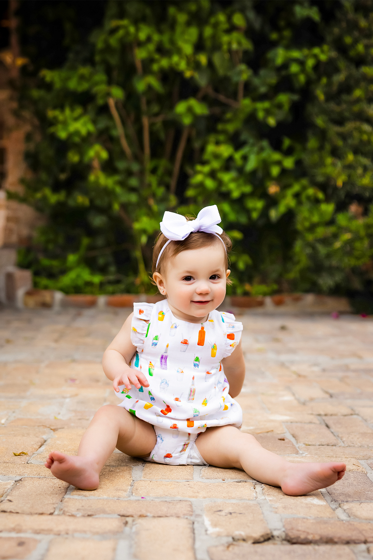 Our 'Sugar, Ice, & Everything Nice' organic muslin bubble romper is the perfect summer outfit for the snoball loving kiddo in your life!
