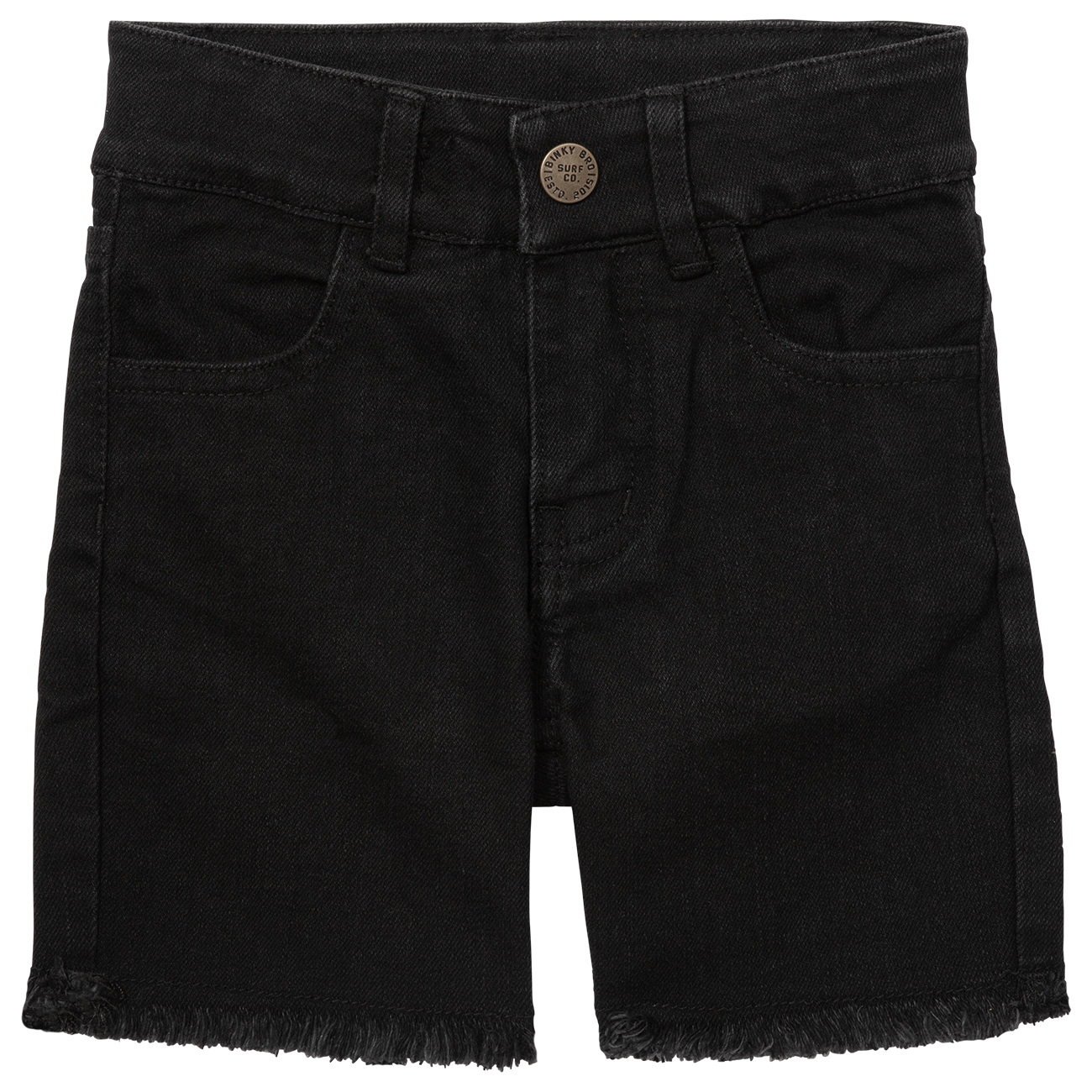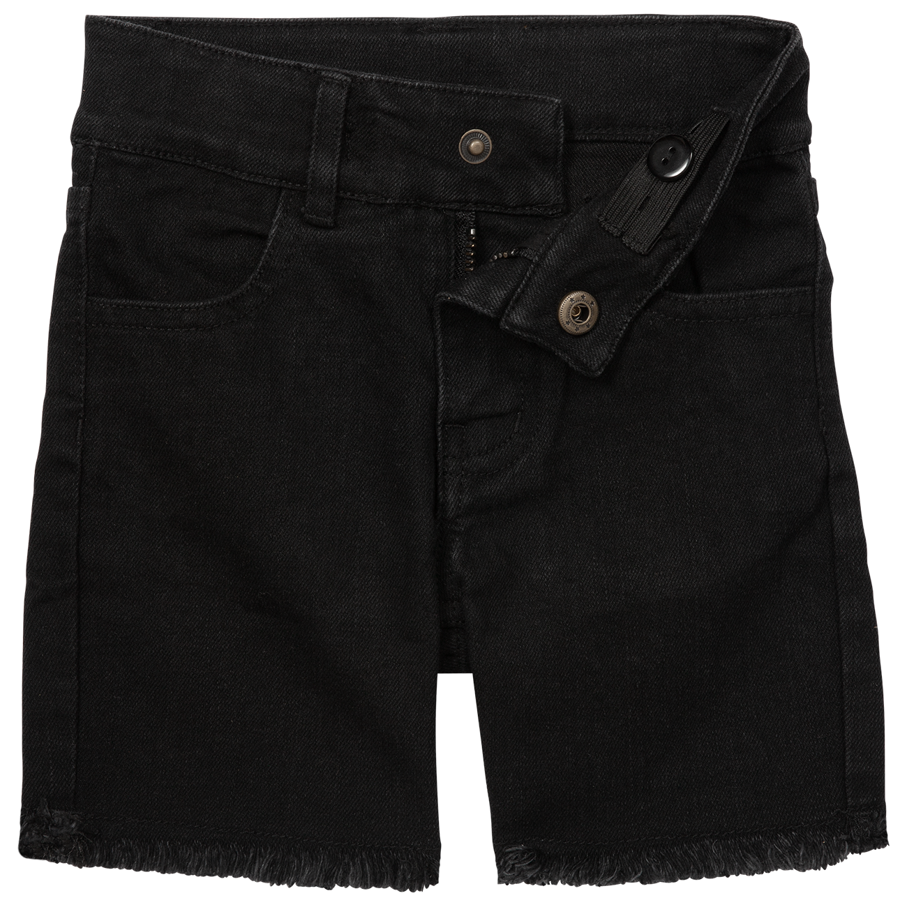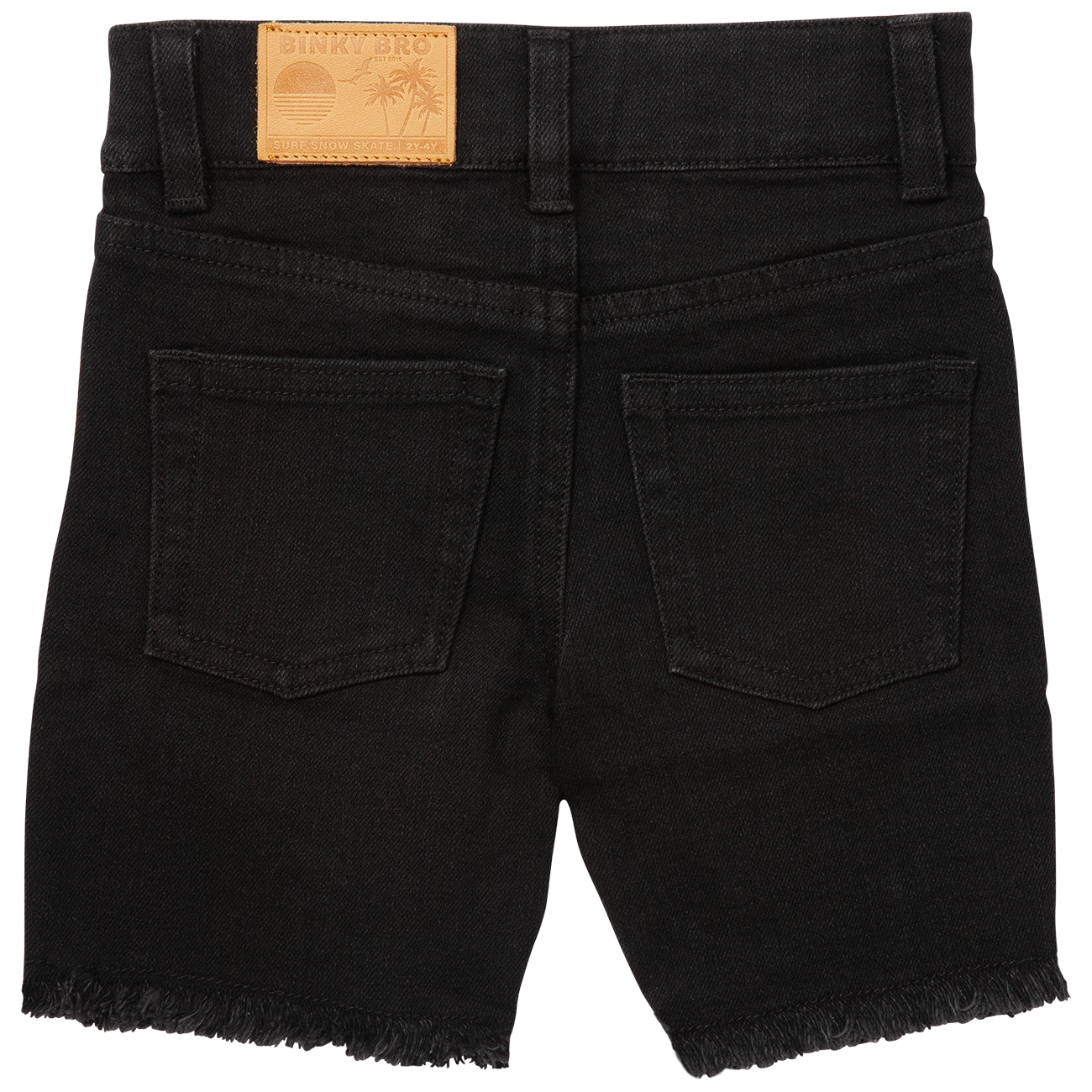 Our Waco Denim Shorts are made of a cotton/poly/spandex blend. They have a frayed bottom, a BinkyBro landscape logo on an artificial leather patch on back, custom buttons, and an adjustable waistband. They will fit like denim but have enough stretch in them to make them comfortable. Our 2-3 year size was miss labeled on the inside tag to read 2-4 years. * These are designed to be fitted and land above the knee. (Not baggy at all.)