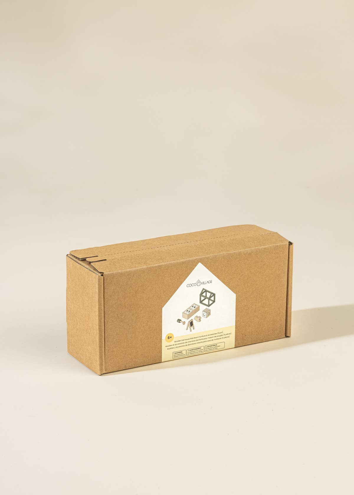 The total set includes 8 pieces. For the baby's room, there is a changing table, a small rocking horse and of course, a baby crib. For the child's room, there is a cute little house bed, two bedside tables, an easel and a lamp.