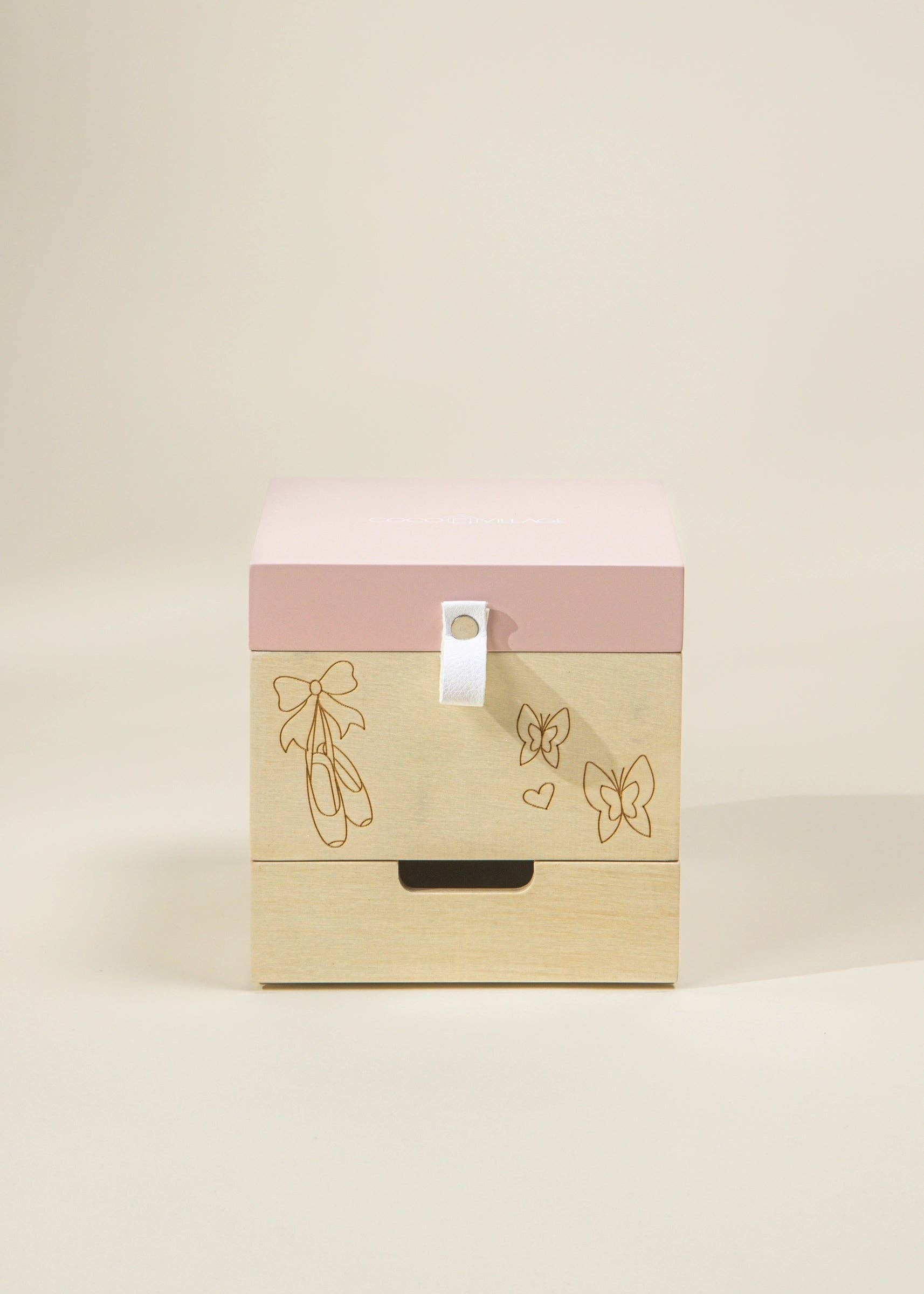 Our ballerina-inspired musical souvenir box is designed with ballet-related engravings and includes a little ballerina that pops up when you open it. It plays the soothing melody of "Swan Lake", perfect for capturing precious childhood moments or adding a touch of natural beauty to your space. This music box is a timeless keepsake that will enchant both young and old alike.